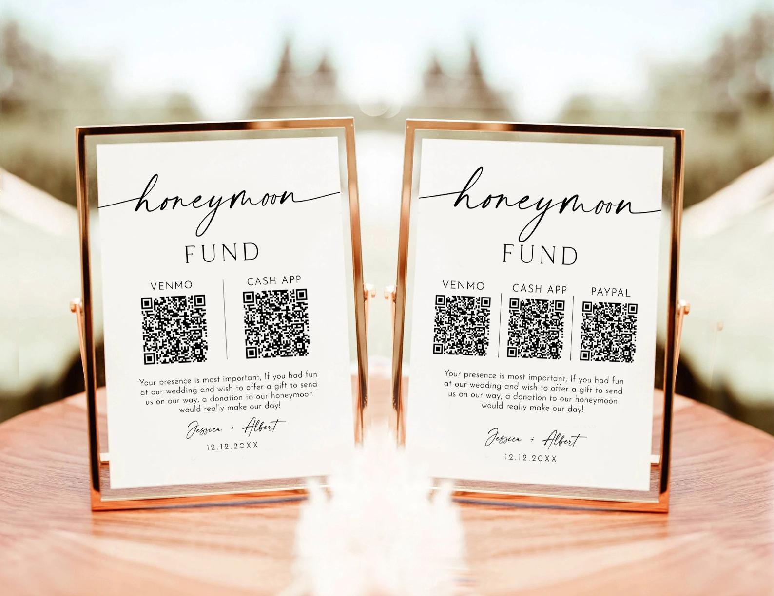 • Reusable & Sustainable: Unlike traditional envelopes or cash boxes, this QR code sign is a paperless, eco-friendly solution to honeymoon gifting.